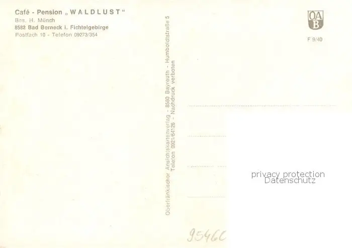 73801915 Bad_Berneck Cafe Pension Waldlust Bad_Berneck postalisch nicht gelaufen nach 1965 Erhaltung siehe scans [WerneD78] [WernPID7 ]