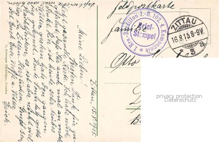73801953 Zittau Markt Zittau postalisch gelaufen 1915 Feldpost - Stempel Erhaltung siehe scans [FriedD77] Feldpost - Stempel[Frierer ]