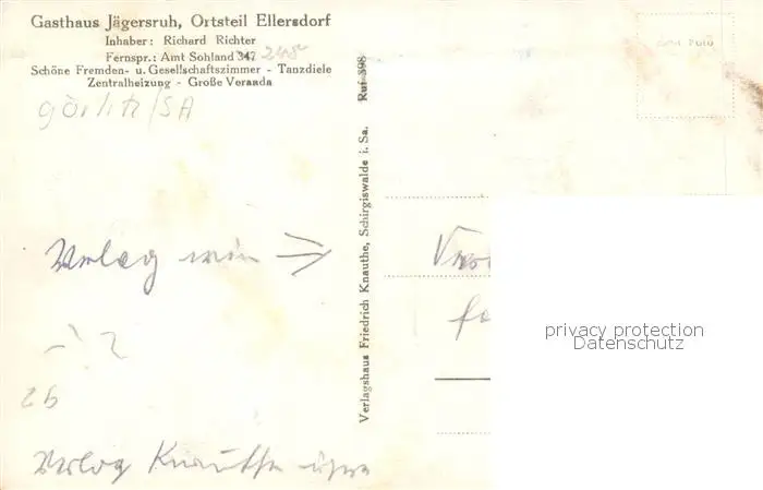 73801958 Ellersdorf_Sohland-Rotstein Gasthaus Jaegersruh postalisch nicht gelaufen 1921-1965 Erhaltung siehe scans [FriedD77] [Frierer ]