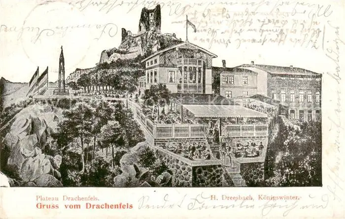 73802124 Koenigswinter Drachenfels Hotel Burgruine Koenigswinter postalisch gelaufen 1905 Erhaltung siehe scans [FriedD77] [Frierer ]