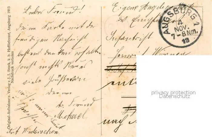 73802153 Augsburg Waldrestaurant Siebentisch Augsburg postalisch gelaufen 1913 Erhaltung siehe scans [FriedD77] [Frierer ]