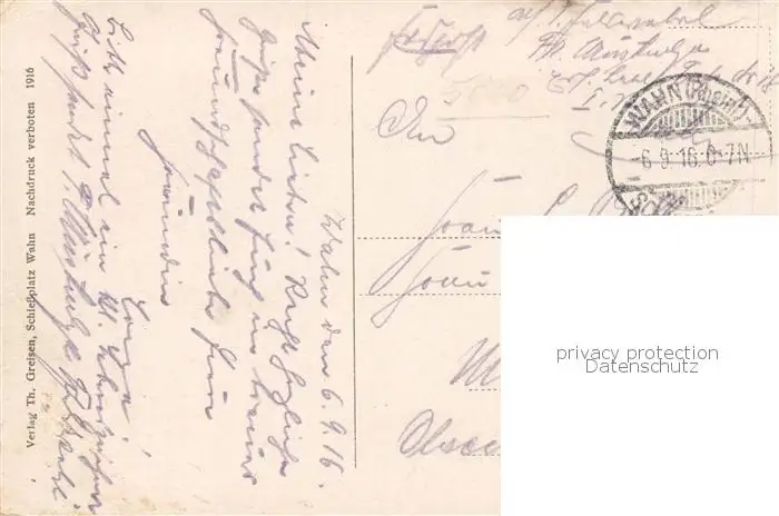 73802159 Wahn_Koeln Schiessplatz Wahn Bahnhof E-Werk Wohngebaeude Post Kommandantenwohnung Verwaltungsgebaeude Feldpost Wahn_Koeln postalisch gelaufen 1916 Erhaltung siehe scans [FriedD77] [Frierer ]