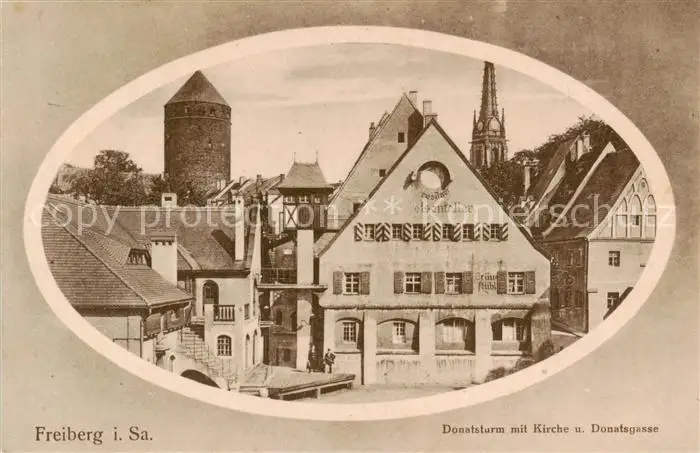 73802172 Freiberg__Sachsen Donatsturm mit Kirche und Donatsgasse postalisch nicht gelaufen 1921-1965 Erhaltung siehe scans [FriedD77] [Frierer ]