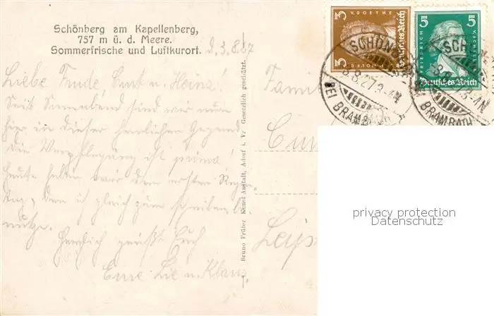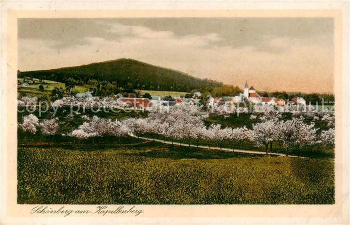 73802203 Schoenberg_Bad_Brambach Panorama Ort am Kapellenberg Baumbluete Schoenberg_Bad_Brambach postalisch gelaufen 1927 Erhaltung siehe scans [FriedD77] [Frierer ]