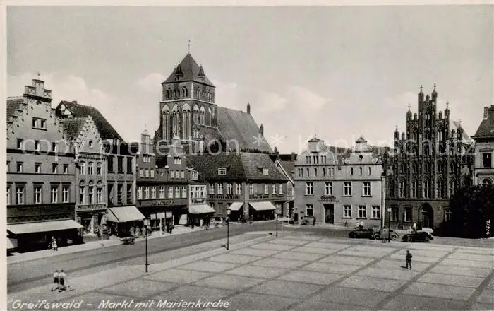 AK / Ansichtskarte 73803152 Greifswald Markt mit Marienkirche Greifswald