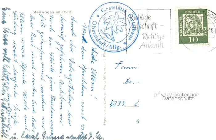 73803341 Oy-Mittelberg Stellwagen im Oytal Oy-Mittelberg postalisch gelaufen 1957 Erhaltung siehe scans [WerneD78] [WernPID7 ]