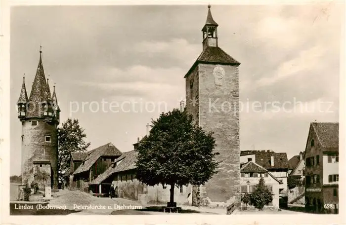 AK / Ansichtskarte 73803361 Lindau_Bodensee Peterskirche und Diebsturm Lindau Bodensee