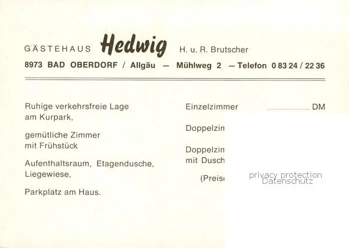 73803669 Bad_Oberdorf Gaestehaus Hedwig Panorama Schwimmbad Bad_Oberdorf postalisch nicht gelaufen nach 1965 Werbekarte (keine Postkarte) Erhaltung siehe scans [WerneD78] Werbekarte (keine Postkarte)[WernPID7 ]