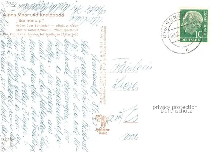 73803678 Sonthofen__Oberallgaeu Alpen Moor und Kneippbad Sonnenalp Wintergarten postalisch gelaufen 1957 Erhaltung siehe scans [WerneD78] [WernPID7 ]