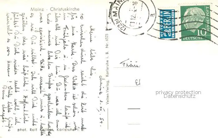 73803867 Mainz__Rhein Christuskirche postalisch gelaufen 1954 Erhaltung siehe scans [WerneD78] [WernPID7 ]