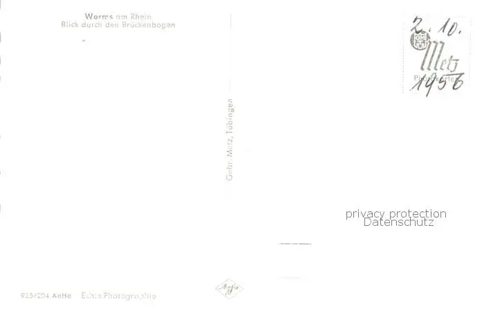 73803911 Worms_Rhein Blick durch den Brueckenbogen Worms Rhein postalisch nicht gelaufen 1956 Erhaltung siehe scans [WerneD78] [WernPID7 ]