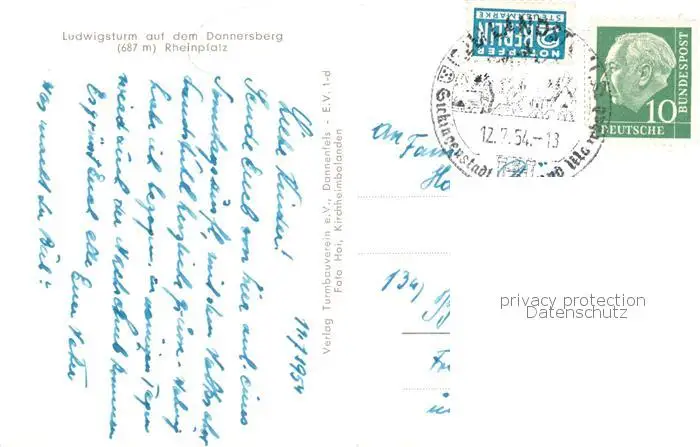 73803926 Donnersberg_Pfalz Ludwigsturm postalisch gelaufen 1954 Erhaltung siehe scans [WerneD78] [WernPID7 ]
