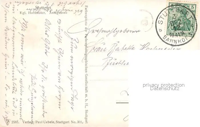 73804063 Stuttgart Kgl Hoftheater Anlagensee Fontaene Stuttgart postalisch gelaufen 1912 Erhaltung siehe scans [WerneD78] [WernPID7 ]