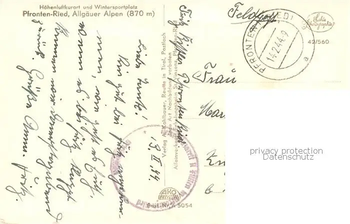 73804110 Pfronten Krankenhaus und Erholungsheim St. Vinzenz im Winter Pfronten postalisch gelaufen 1944 Feldpost - Stempel Erhaltung siehe scans [FriedD77] Feldpost - Stempel[Frierer ]