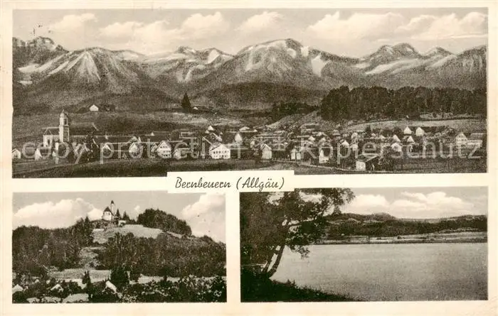 73804114 Bernbeuern_Bernbeuren Gesamtansicht mit Alpenpanorama Bergkirche See postalisch gelaufen 1939 Erhaltung siehe scans [FriedD77] [Frierer ]