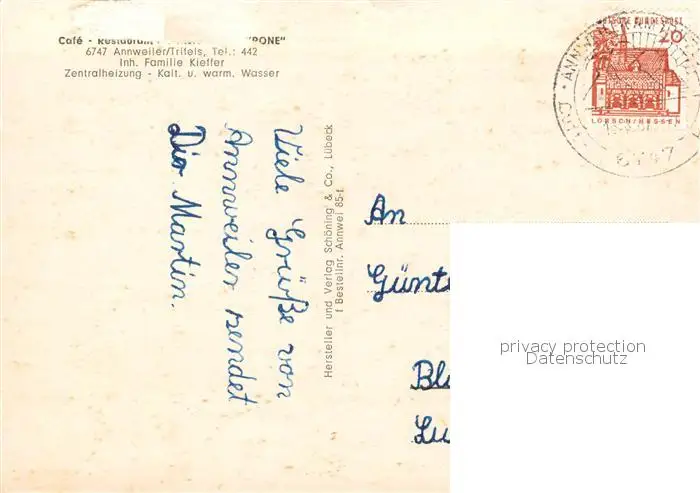 73804327 Annweiler_Trifels Cafe Restaurant Zur Krone Gastraeume Weiher Annweiler_Trifels postalisch gelaufen 1966 Erhaltung siehe scans [WerneD78] [WernPID7 ]