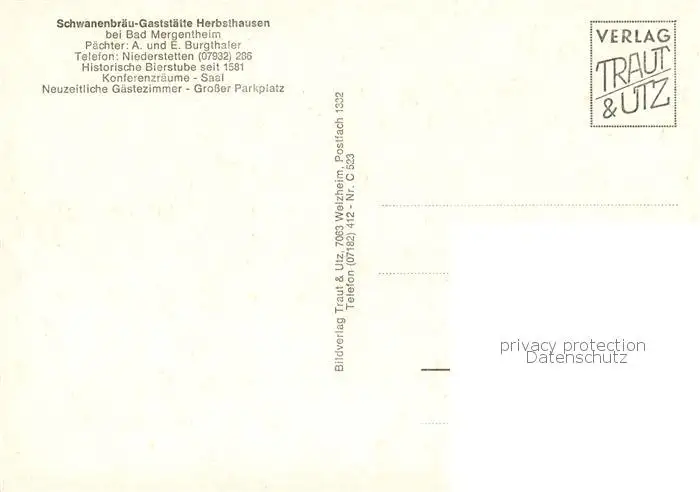 73804392 Herbsthausen_Tauber Schwanenbraeu Gaststaette Gastraeume Zimmer Herbsthausen_Tauber postalisch nicht gelaufen nach 1965 Erhaltung siehe scans [WerneD78] [WernPID7 ]