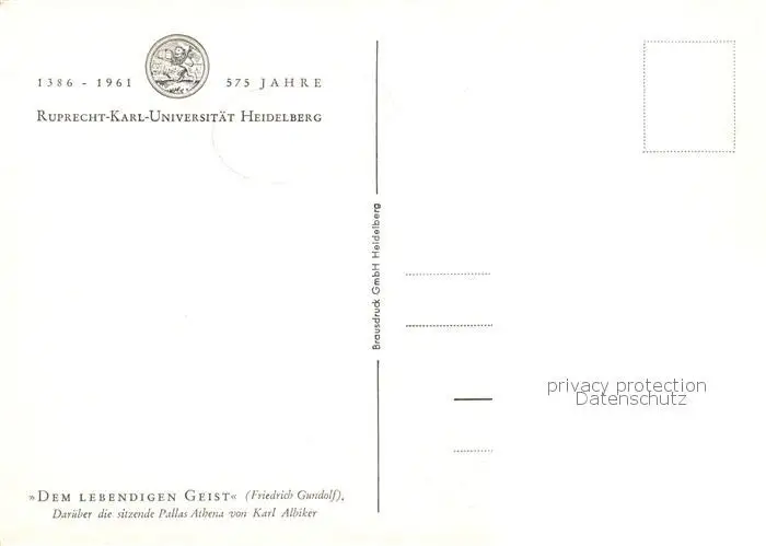 73804451 Heidelberg_Neckar Skulptur Ruprecht Karl Universitaet Heidelberg Neckar postalisch nicht gelaufen 1961 Erhaltung siehe scans [WerneD78] [WernPID7 ]