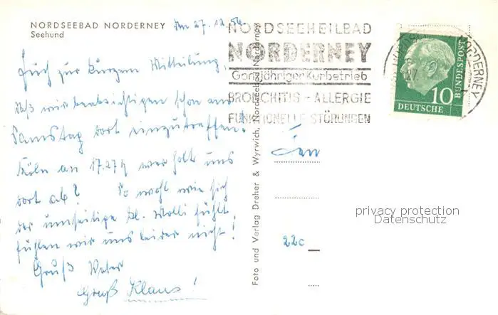 73804868 Norderney_Nordseebad Seehund Norderney_Nordseebad postalisch gelaufen 1956 Erhaltung siehe scans [FriedD77] [Frierer ]
