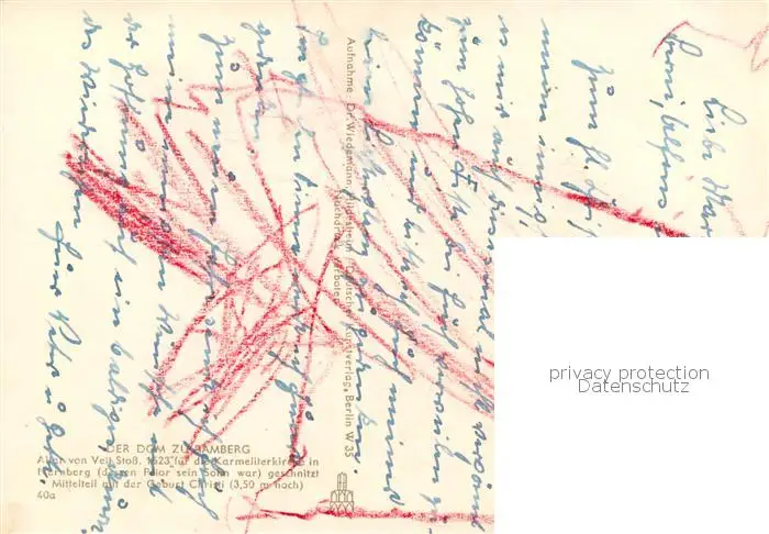 73804930 Bamberg Dom Altar von Veit Stoss fuer die Karmeliterkirche in Nuernberg geschnitzt Mittelteil mit der Geburt Christi Bamberg postalisch nicht gelaufen 1921-1965 Erhaltung siehe scans [FriedD77] [Frierer ]