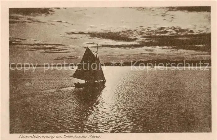 73804992 Steinhuder_Meer_Wunstorf Abendstimmung mit Segelboot postalisch nicht gelaufen 1923 Erhaltung siehe scans [WerneD78] [WernPID7 ]