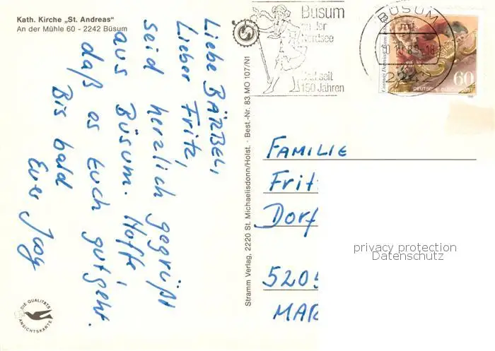 73805074 Buesum_Nordseebad St Andreas Kirche Inneres Buesum_Nordseebad postalisch gelaufen 1989 Erhaltung siehe scans [FriedD77] [Frierer ]
