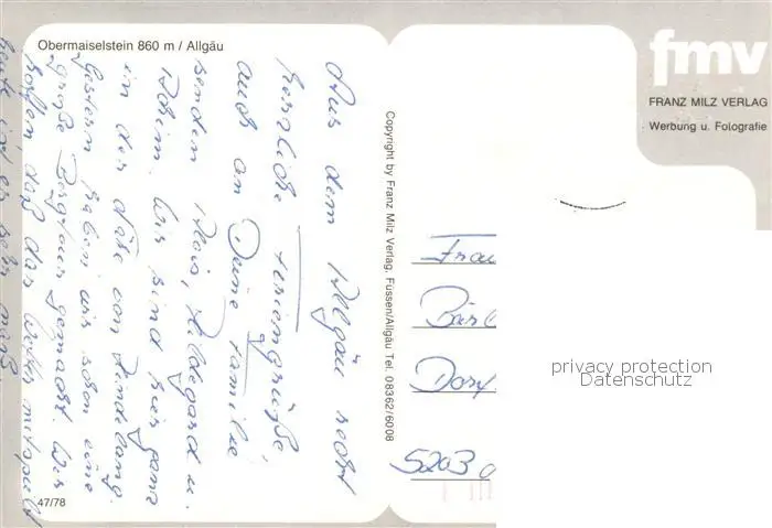 73805165 Obermaiselstein Panorama Alpen Obermaiselstein postalisch gelaufen nach 1965 Erhaltung siehe scans [FriedD77] [Frierer ]