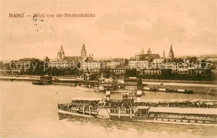 73805279 Mainz__Rhein Blick von der Strassenbruecke postalisch gelaufen 1914 Erhaltung siehe scans [WerneD78] [WernPID7 ]