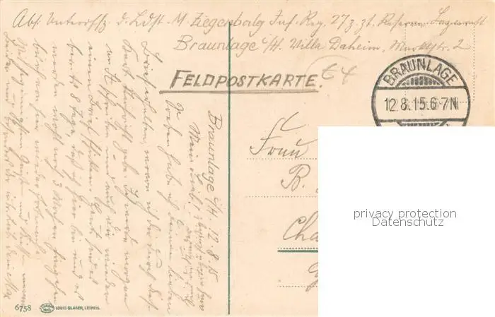 73805467 Braunlage Wolfsbachmuehle im Harz Feldpost Braunlage postalisch gelaufen 1915 Erhaltung siehe scans [WerneD78] [WernPID7 ]