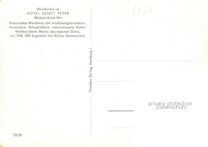 73805605 Walporzheim Weinkirche im Hotel Sanct Peter Walporzheim postalisch nicht gelaufen 1921-1965 Erhaltung siehe scans [WerneD78] [WernPID7 ]