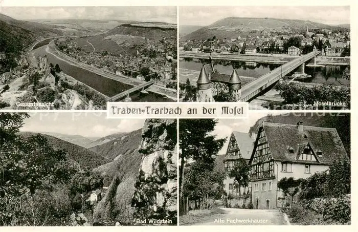 AK / Ansichtskarte 73806076 Traben-Trarbach_Mosel Panorama Moselbruecke Bad Wildstein Alte Fachwerkhaeuser