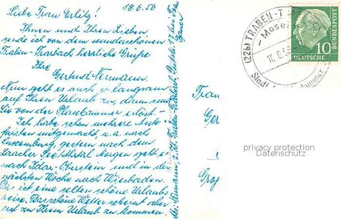 73806076 Traben-Trarbach_Mosel Panorama Moselbruecke Bad Wildstein Alte Fachwerkhaeuser postalisch gelaufen 1956 Erhaltung siehe scans [WerneD78] [WernPID7 ]