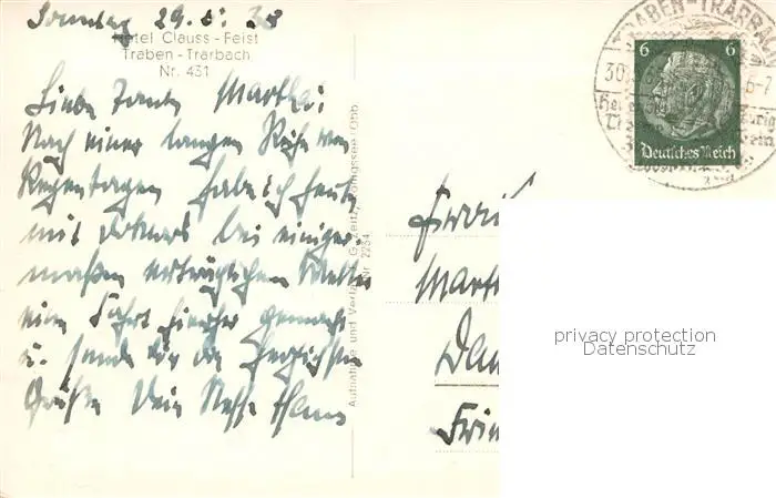 73806079 Traben-Trarbach_Mosel Hotel Clauss Feist postalisch gelaufen 1938 Erhaltung siehe scans [WerneD78] [WernPID7 ]