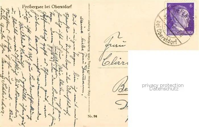 73806170 Freibergsee_Oberstdorf Panorama postalisch gelaufen 1942 Erhaltung siehe scans [WerneD78] [WernPID7 ]