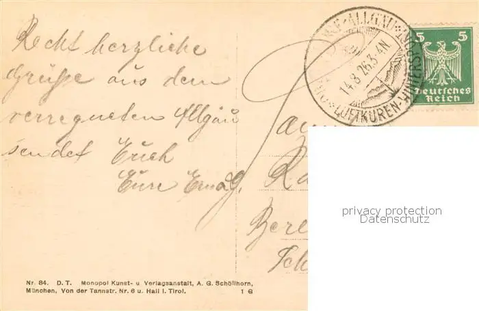 73806269 Gerstruben_Oberstdorf mit Hoeffatz postalisch gelaufen 1926 Erhaltung siehe scans [WerneD78] [WernPID7 ]