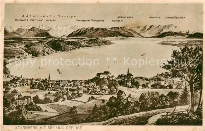 73806473 Starnberg_Starnbergersee mit Karwendel Gebirge Panoramakarte postalisch gelaufen 1921-1965 Erhaltung siehe scans [WerneD78] [WernPID7 ]