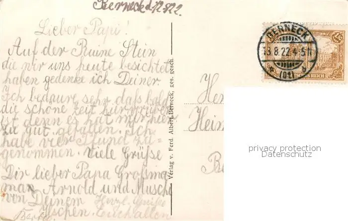 73806564 Berneck_Bad_Fichtelgebirge Ruine Amt Stein postalisch gelaufen 1922 Erhaltung siehe scans [WerneD78] [WernPID7 ]