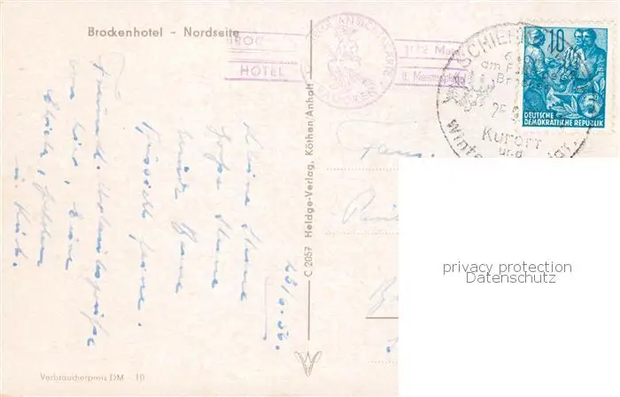 73806842 Brocken_Harz Brockenhotel Nordseite Brocken Harz postalisch gelaufen 1954 Erhaltung siehe scans [WerneD78] [WernPID7 ]