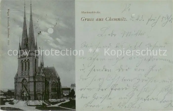 73806894 Chemnitz Markuskirche Chemnitz postalisch gelaufen 1900 Erhaltung siehe scans [WerneD78] [WernPID7 ]