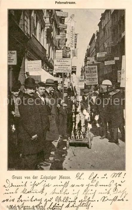73807343 Leipzig Peterstrasse waehrend der Messe Leipzig postalisch gelaufen 1903 Erhaltung siehe scans [WerneD78] [WernPID7 ]