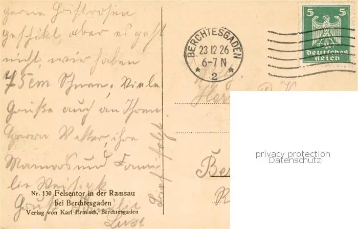 73807374 Ramsau__Berchtesgaden Felsentor postalisch gelaufen 1926 Erhaltung siehe scans [WerneD78] [WernPID7 ]