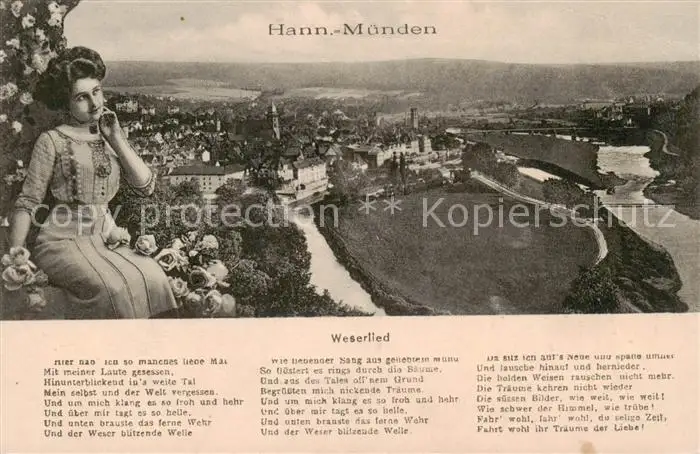 73807455 Hann._Muenden Panorama Weserlied Feldpost Hann. Muenden postalisch gelaufen 1918 Erhaltung siehe scans [WerneD78] [WernPID7 ]