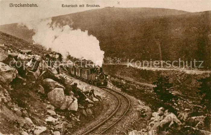 AK / Ansichtskarte 73807554 Brocken_Harz Brockenbahn Eckerloch mit Brocken Brocken Harz