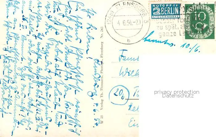 73807574 Gluecksburg_Ostseebad Panorama Gluecksburg_Ostseebad postalisch gelaufen 1954 Erhaltung siehe scans [WerneD78] [WernPID7 ]