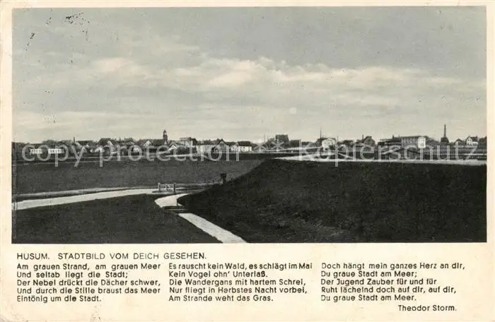 73807652 Husum__Nordfriesland Stadtbild vom Deich gesehen postalisch gelaufen 1942 Erhaltung siehe scans [FriedD77] [Frierer ]