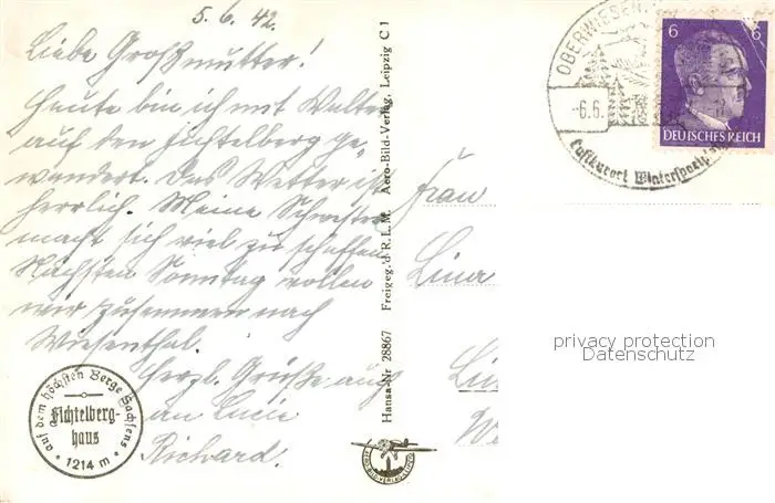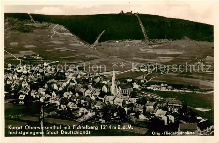 73807856 Oberwiesenthal_Erzgebirge Panorama Kurort mit Fichtelberg Original Fliegeraufnahme Oberwiesenthal Erzgebirge postalisch gelaufen 1942 Erhaltung siehe scans [FriedD77] [Frierer ]