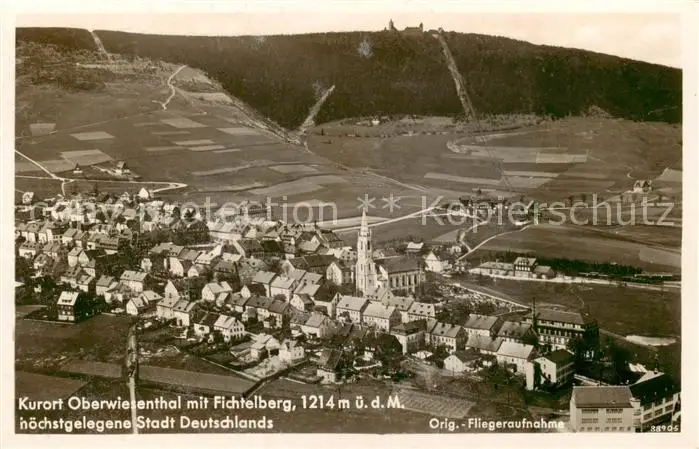 73807874 Oberwiesenthal_Erzgebirge Panorama Kurort mit Fichtelberg Original Fliegeraufnahme Oberwiesenthal Erzgebirge postalisch gelaufen 1937 Erhaltung siehe scans [FriedD77] [Frierer ]