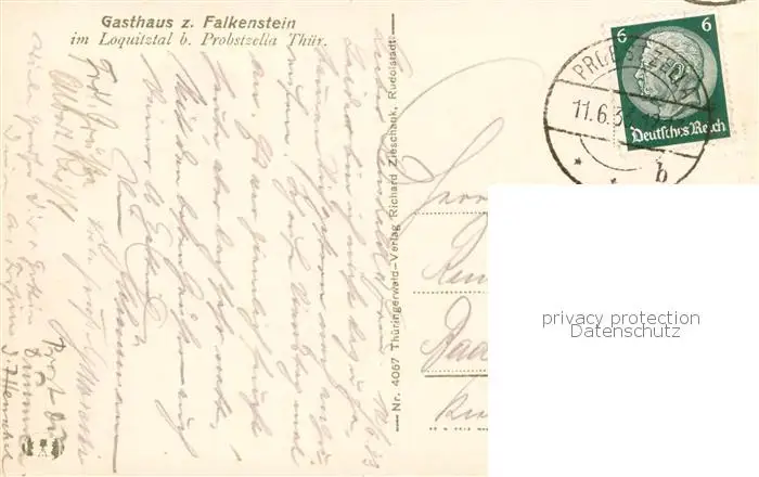 73807875 Probstzella Gasthaus zum Falkenstein Loquitztal Probstzella postalisch gelaufen 1933 Erhaltung siehe scans [FriedD77] [Frierer ]