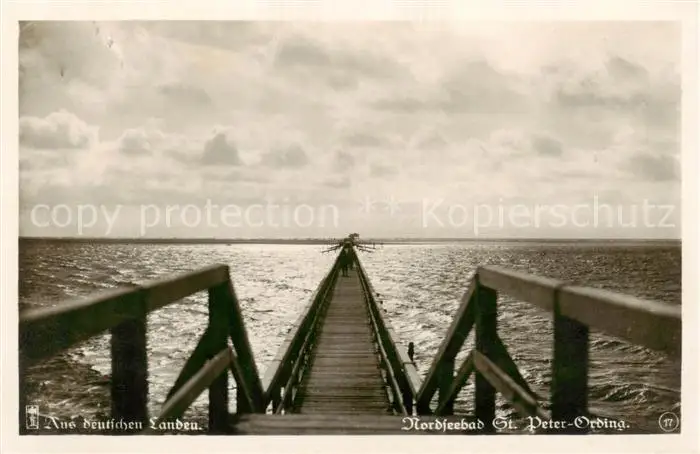 73808188 St-Peter-Ording Seebruecke bei Hochflut postalisch gelaufen 1932 Erhaltung siehe scans [WerneD78] [WernPID7 ]