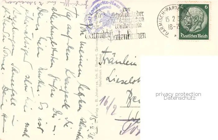 73808298 Kreuzeck_Garmisch-Partenkirchen Kreuzeckhaus Alpenspitze Hoelentalspitzen Zugspitze postalisch gelaufen 1938 Erhaltung siehe scans [WerneD78] [WernPID7 ]